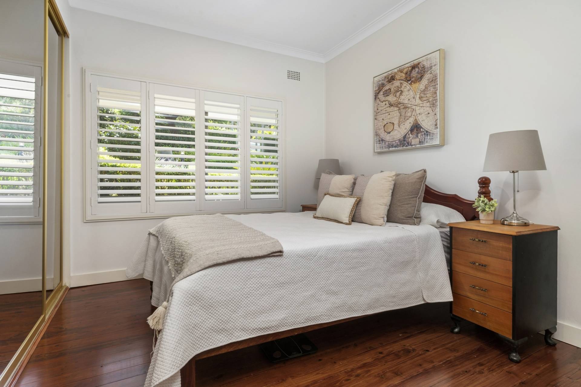 ·       Master bedroom with mirrored built-ins, timber shutters and modern ensuite.