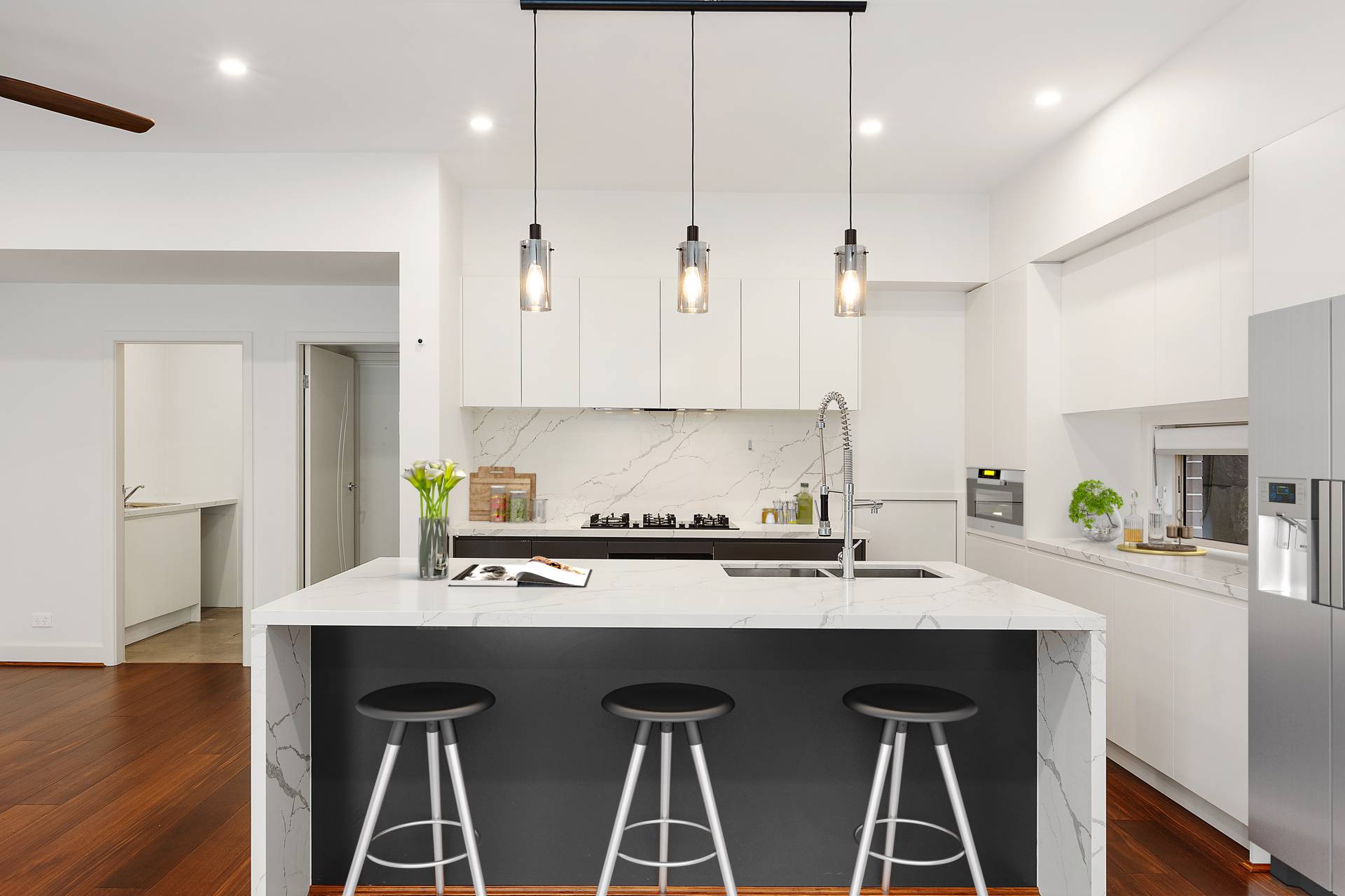 ·       Gourmet kitchen. Engineered stone island bench. European appliances.